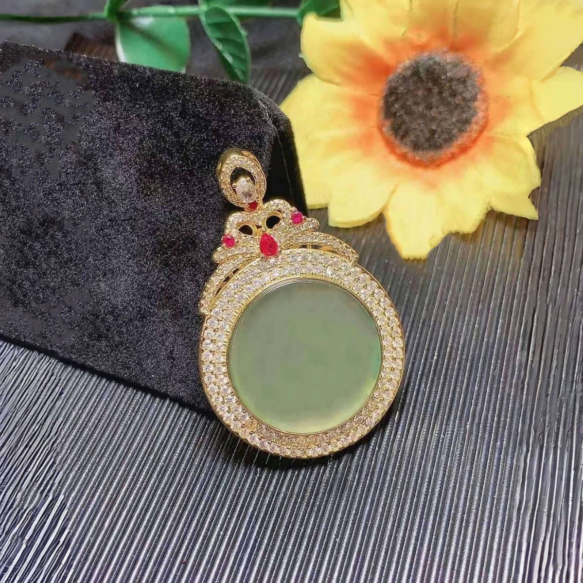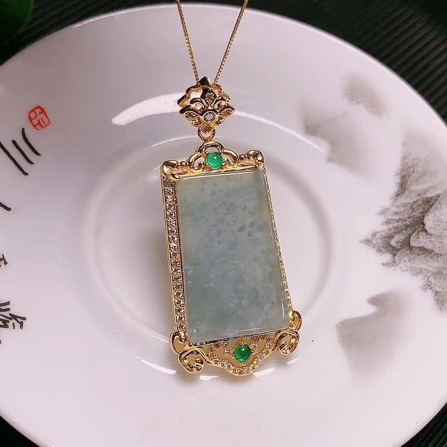 天然A品翡翠雪花綿平安ペンダント銅モザイク国風新中国式アクセサリーネックレス玉ペンダント卸売り