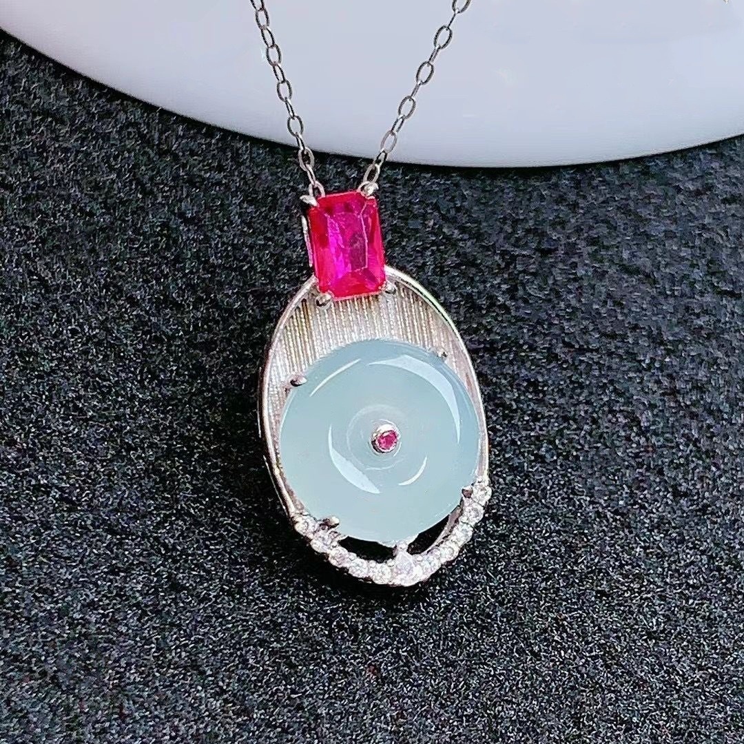 天然危険材料翡翠平安ボタンネックレス925銀モザイクルビー新中国式ペンダントネックレス生放送ソース