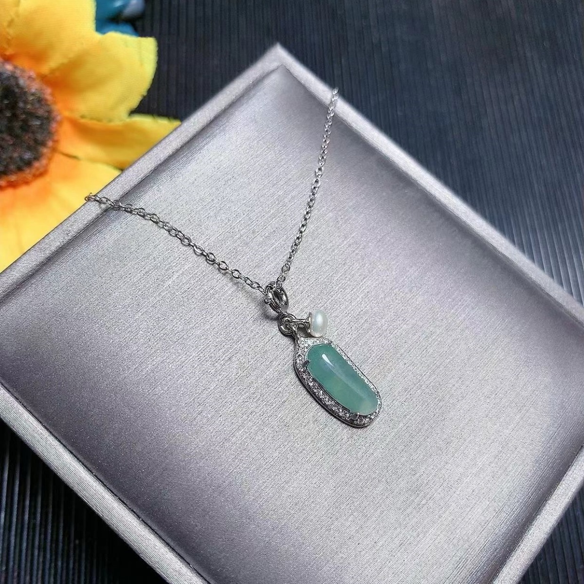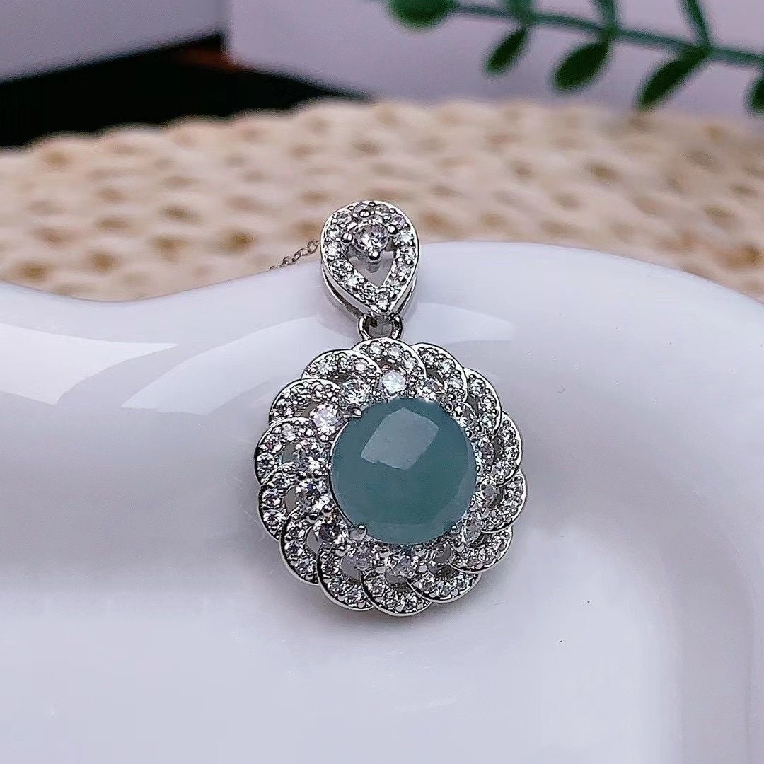 天然翡翠a商品藍水無事ブランドペンダントS925銀は平安ブランドの玉ペンダントネックレスをつけて生放送します。