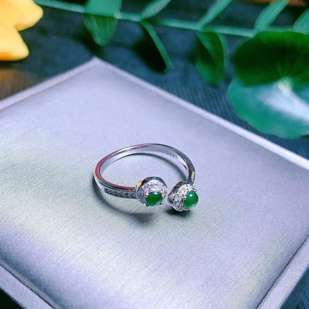 天然翡翠危険材料陽緑卵面指輪S925銀モザイク女戒軽豪華シンプル指環メーカー卸売り