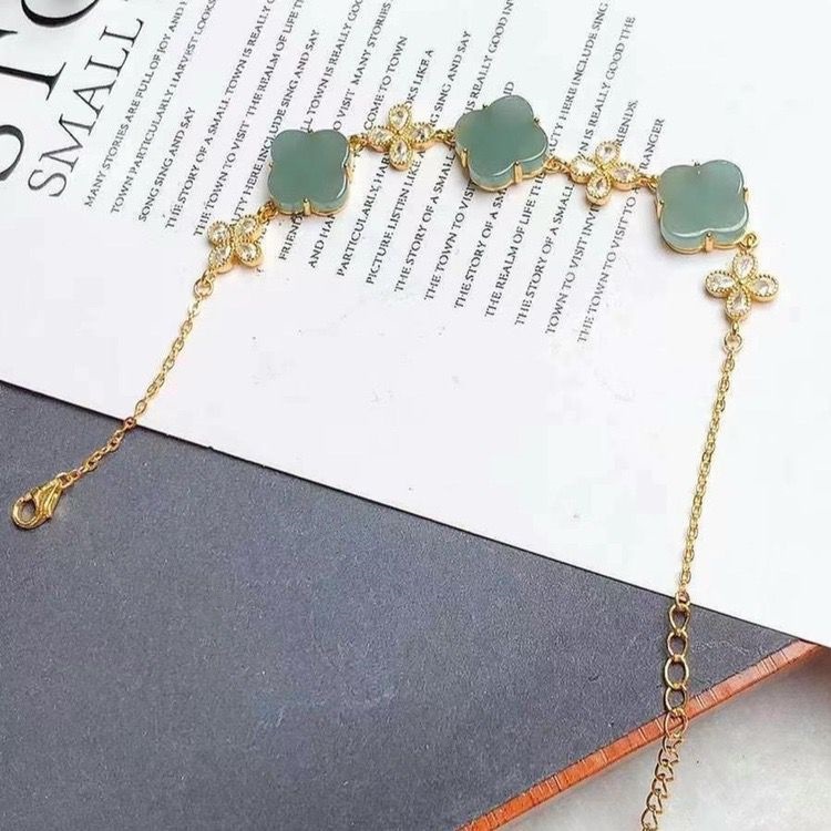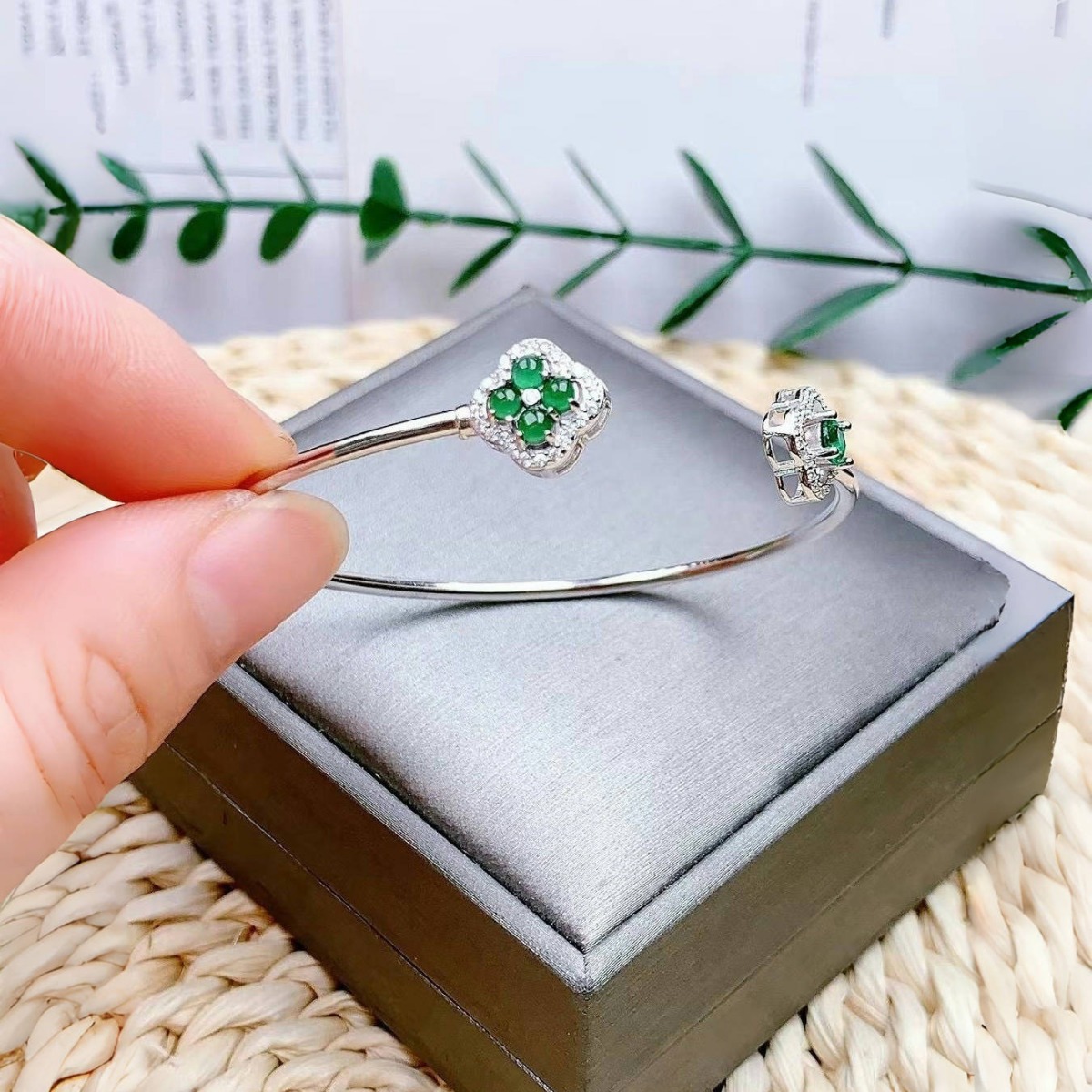 天然危険材料翡翠陽緑四葉草ブレスレットs925銀は女性の手環を飾って潮流を生放送します。