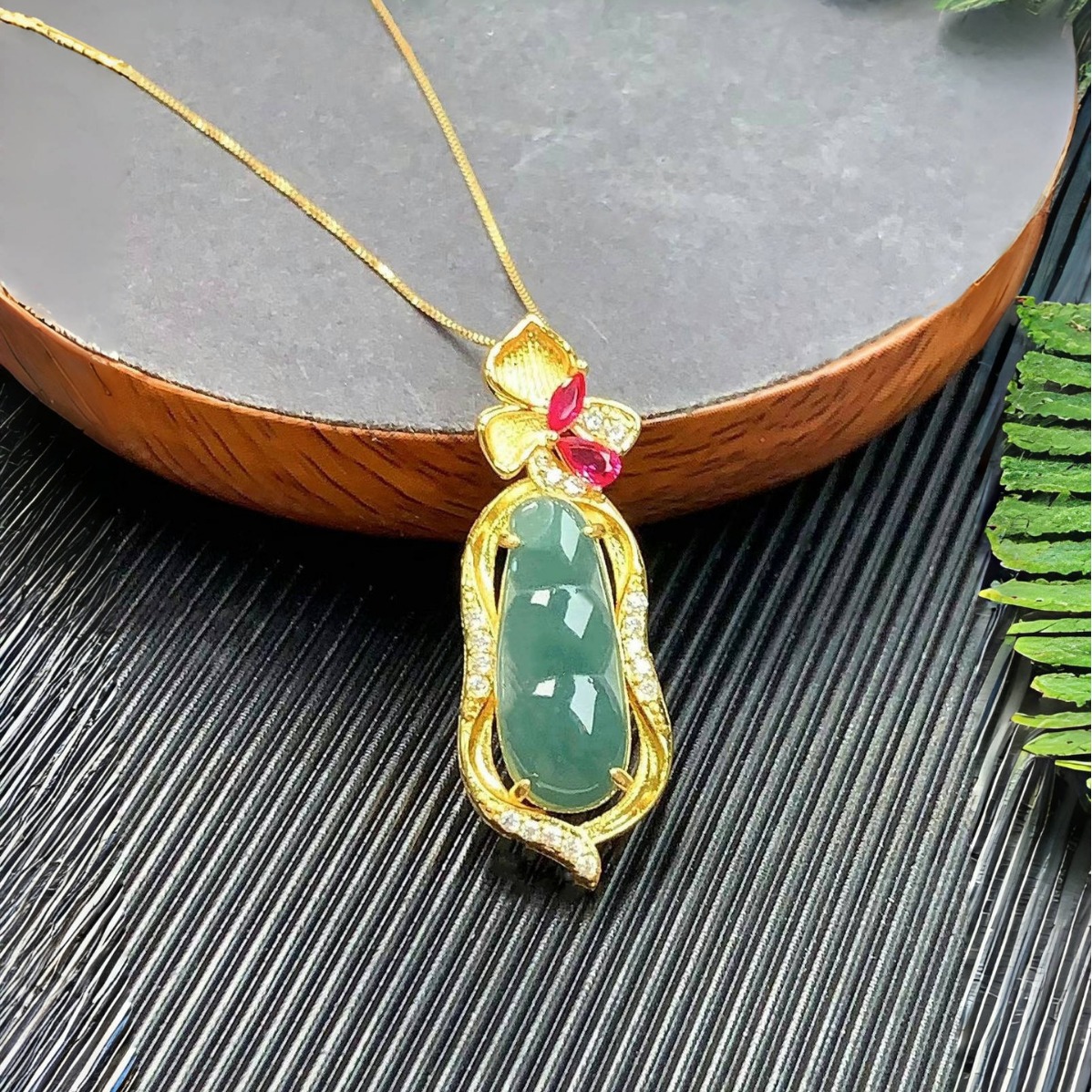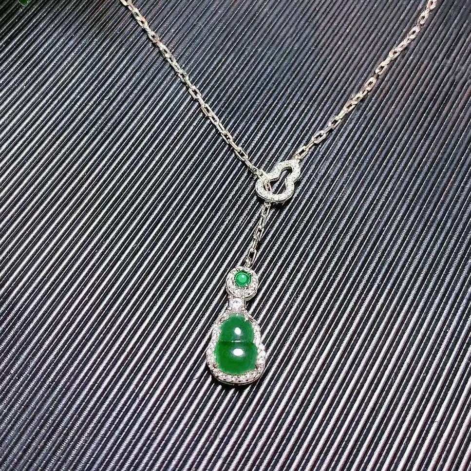 天然危険材料翡翠陽緑ひょうたんデザインペンダント鎖骨鎖S925銀モザイク引き出し式百合ネックレス