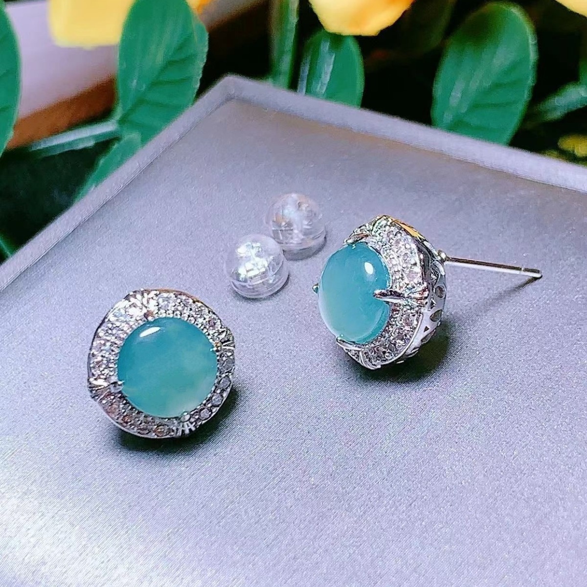 鄒六禧天然翡翠A商品の青い水の卵の顔のピアスの銅のイヤリングの小さい清新で甘い玉のアクセサリーの卸売り