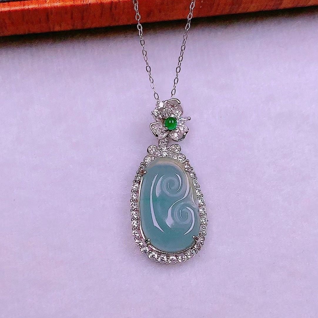 天然a品翡翠藍水如意ペンダントS925銀は女性のネックレスをはめ込んでいます。