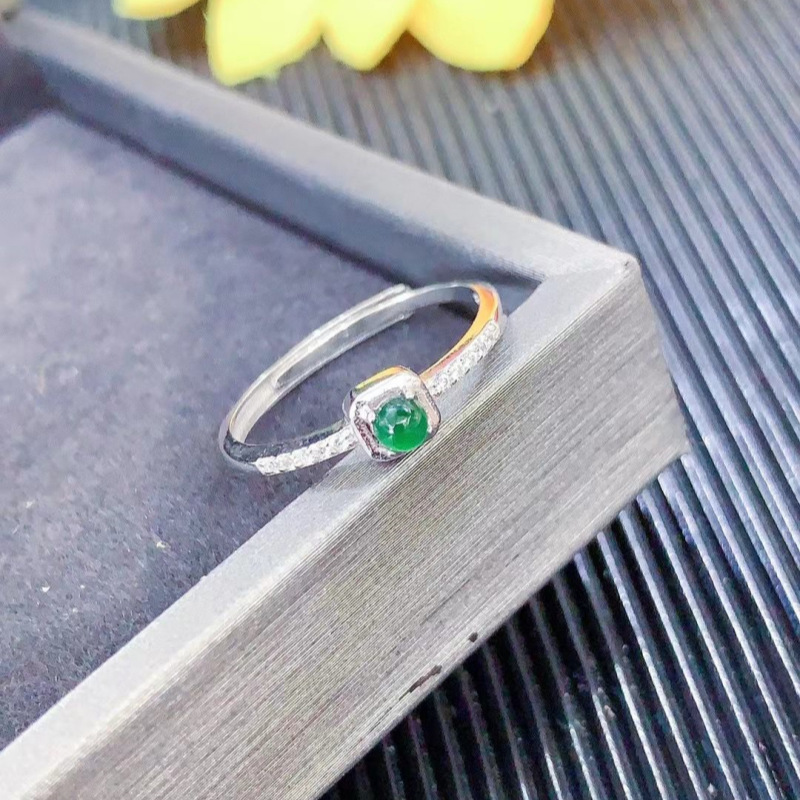 S925銀モザイク天然a品翡翠陽緑氷種玉石指輪気質シンプルファッション指輪卸売り