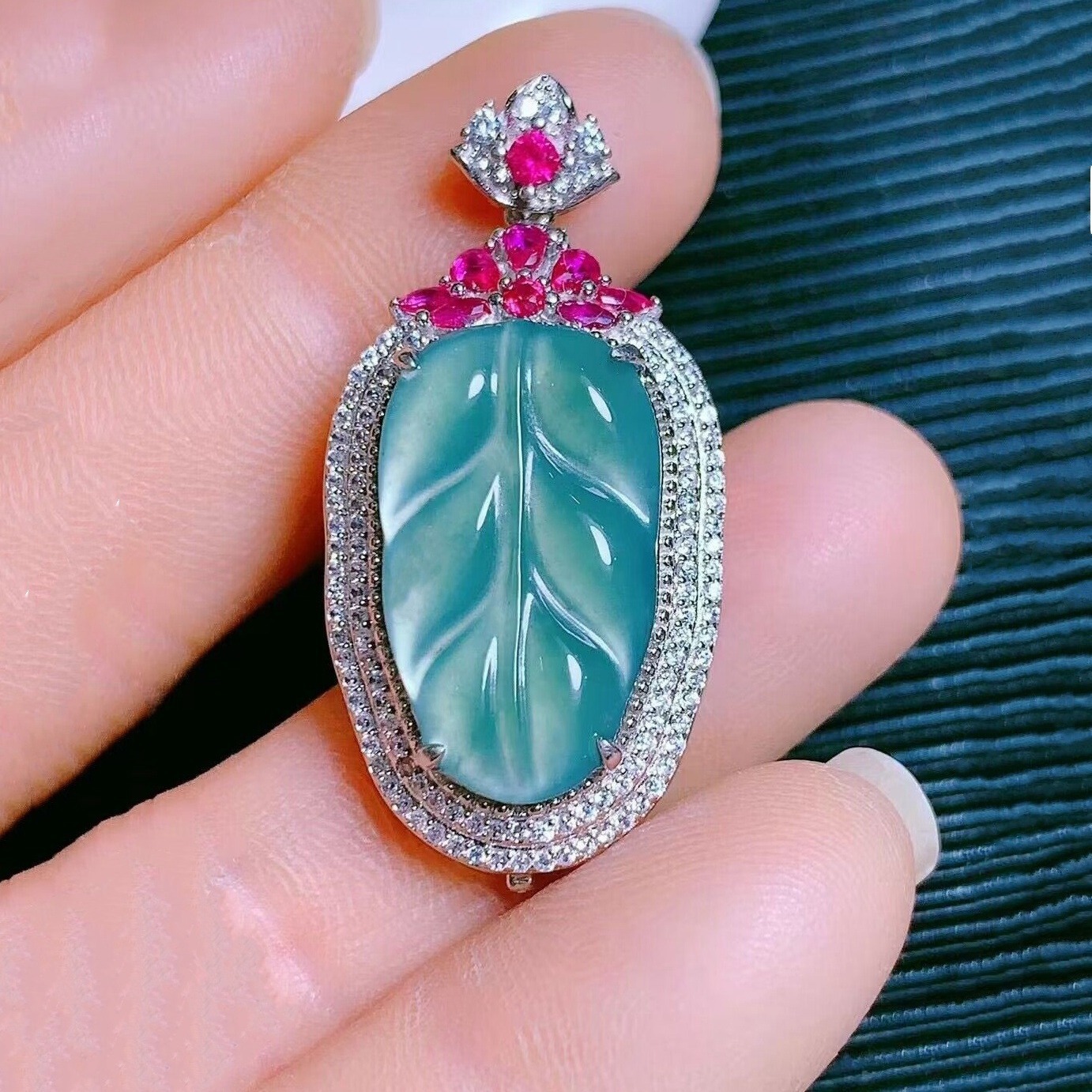 鄒六禧天然a品翡翠木の葉ネックレス軽豪華高級感ジュエリーペンダント女性s 925銀ペンダント卸売り