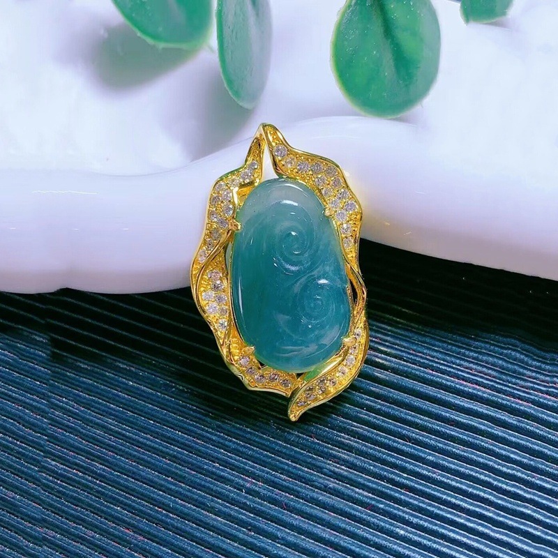 天然翡翠a商品如意銅メッキ玉ペンダントネックレス国風玉ペンダント直播ソース卸売り