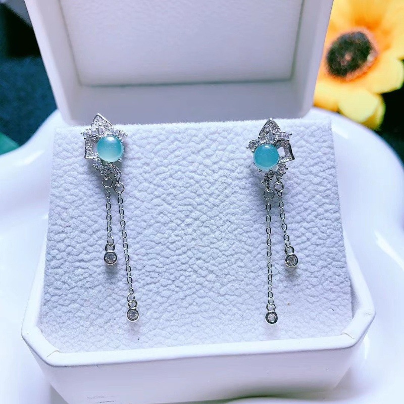 天然翡翠a商品藍水雪花ピアスs925銀モザイク耳飾り小清新甘玉メーカー直販