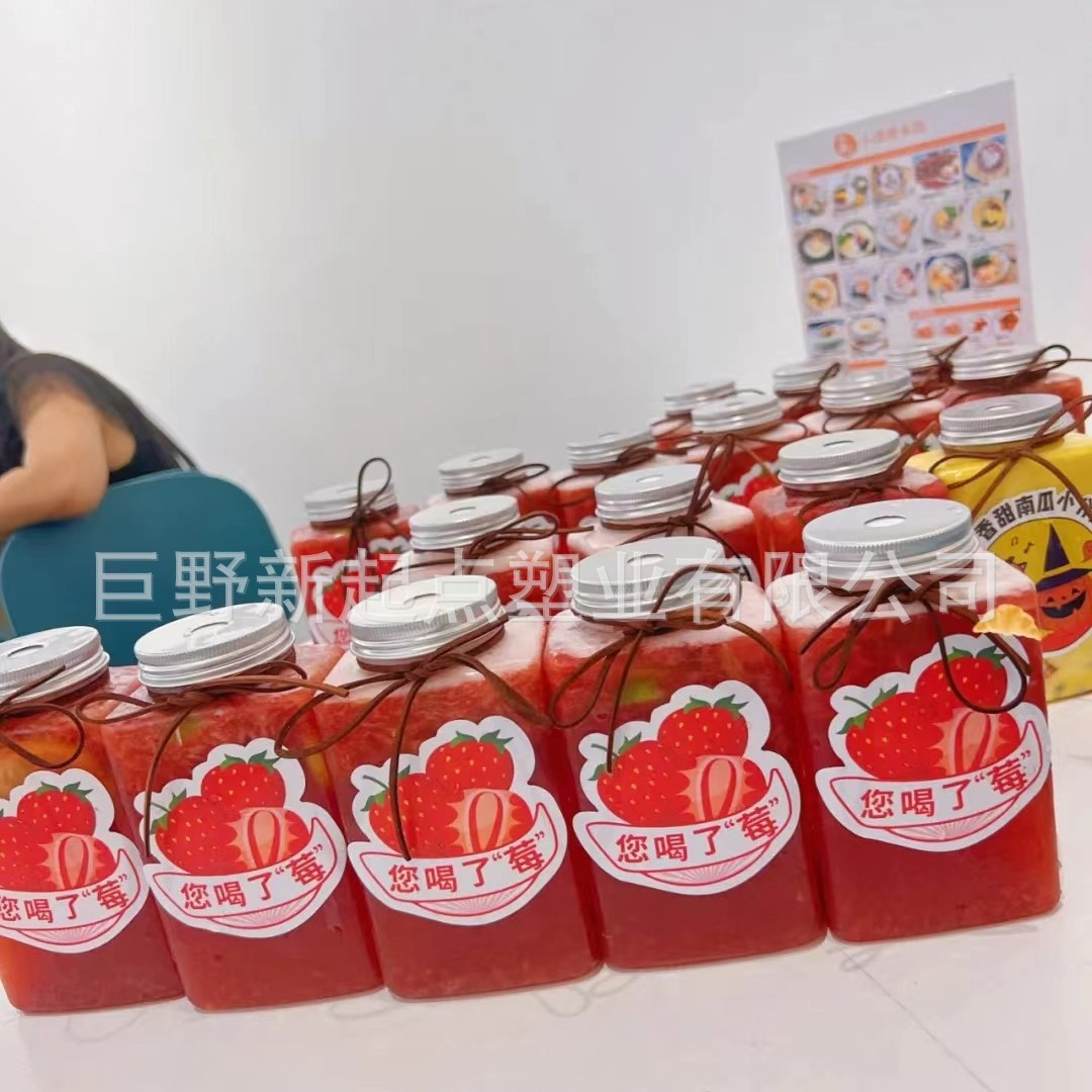 550ml正方形哺乳瓶使い捨てpetプラスチック飲料瓶透明冷泡茶美しいバケツ水槽厚さ