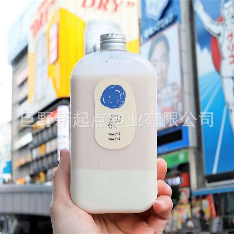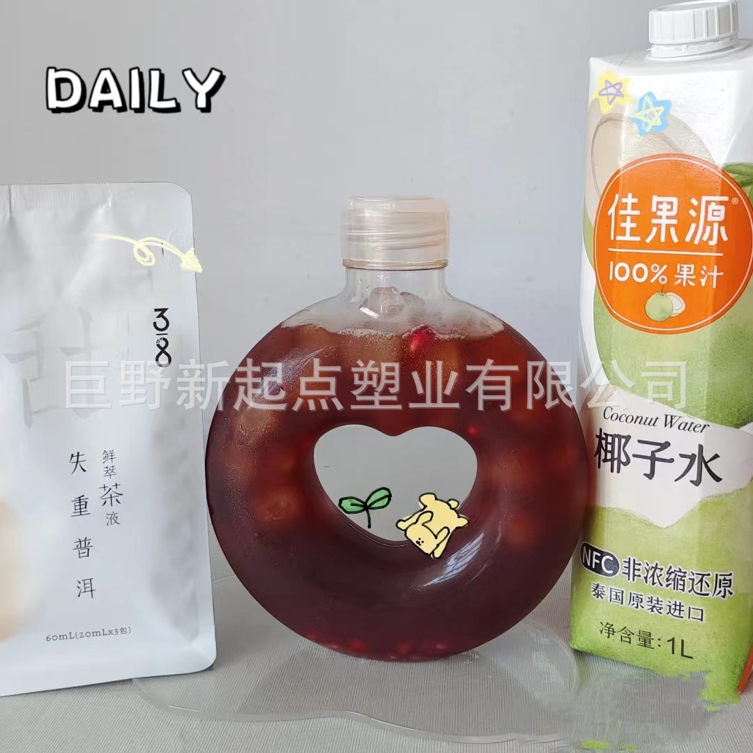 500ml透明プラスチック平円瓶冷たいミルクティージュース使い捨て食品級商用瓶取っ手付き空瓶