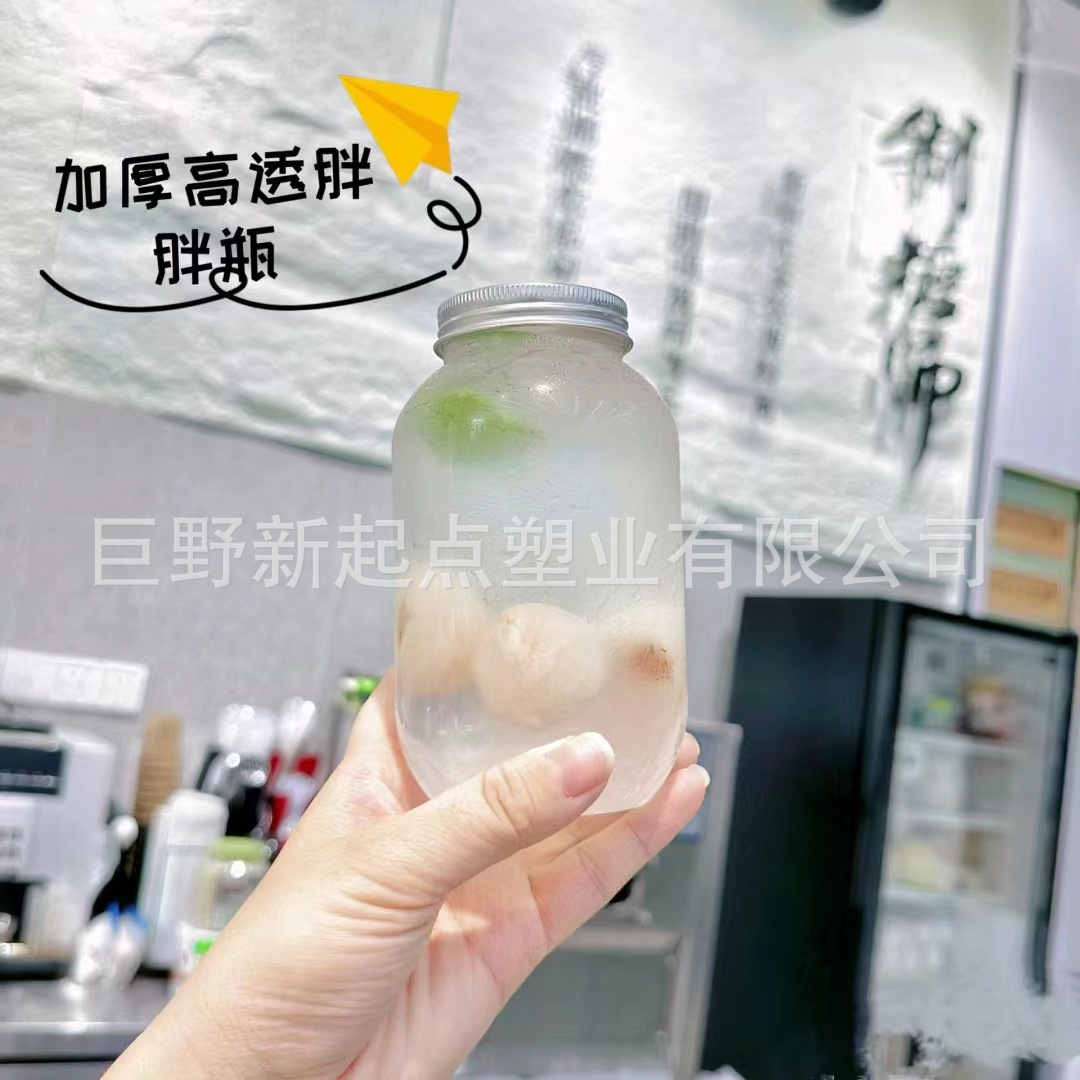 多容量コーヒー瓶レモンティーカップ1000ミリリットル円形哺乳瓶ペットボトル透明アルミカップ太ったカップ