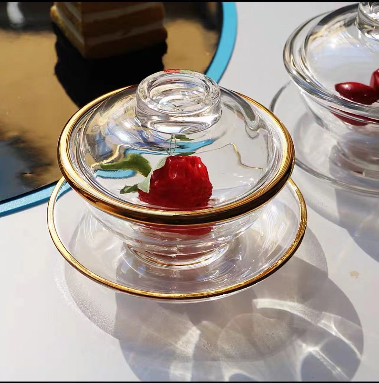 軽くて豪華な創意の金辺のガラスの碗はツバメの巣の碗の精巧な砂糖の水の碗の小さいデザートの美容院の食器を持ちます。