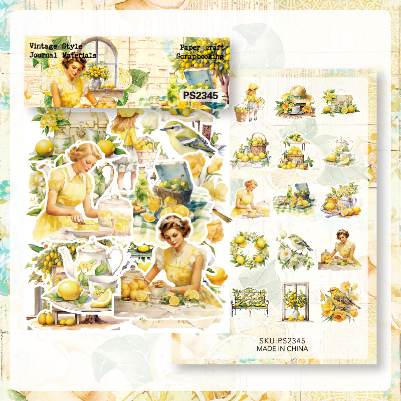 国境を越えてレモンの夏シール40枚を提供して文芸復古手帳素材バッグ素材紙カットps2345