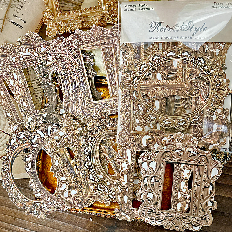 レトロ透かし彫り枠DIYアルバムクリップ本手帳素材紙カード材料背景紙R3114