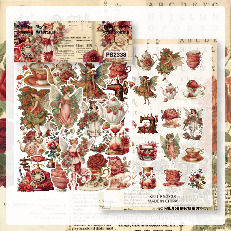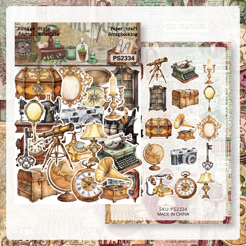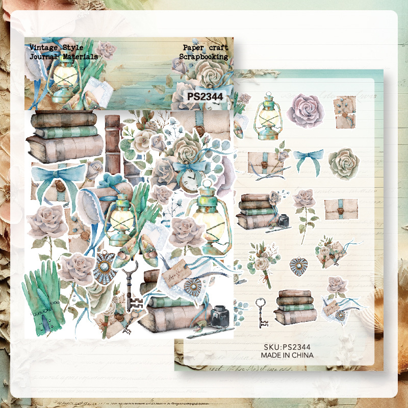 クロスボーダー専用40枚中世ステッカーバッグ文芸レトロ手帳素材バッグ素材紙ダイカットps2334