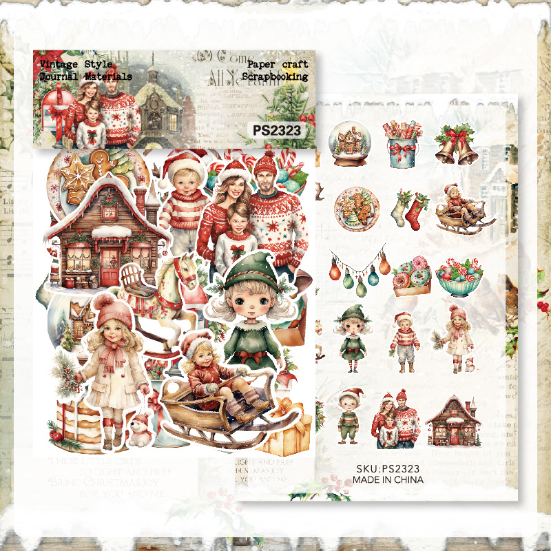 クロスボーダー専用40枚背ゴムクリスマスステッカーバッグ文芸レトロ手帳素材バッグ素材紙ダイカットps2323
