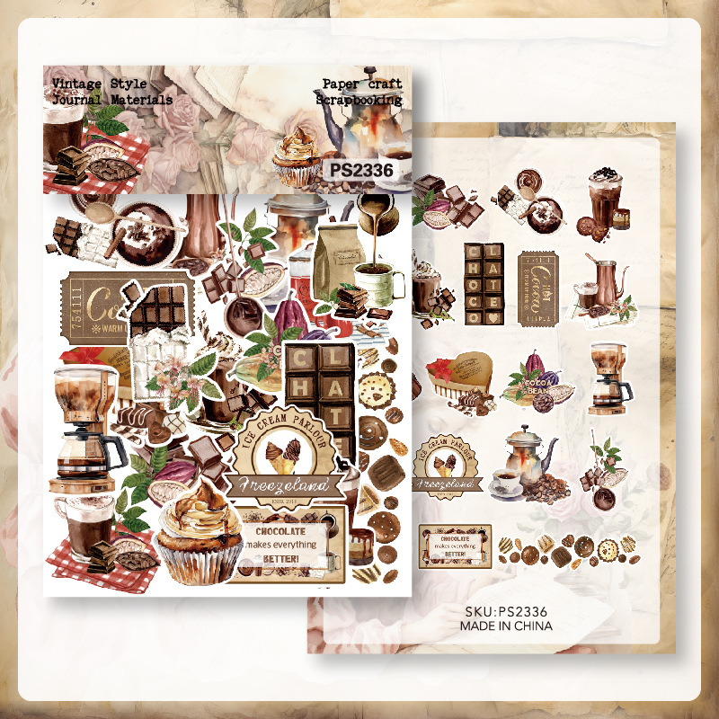 クロスボーダー専用チョコレートシール40枚入文芸レトロ手帳素材バッグ素材紙ダイカットps2336