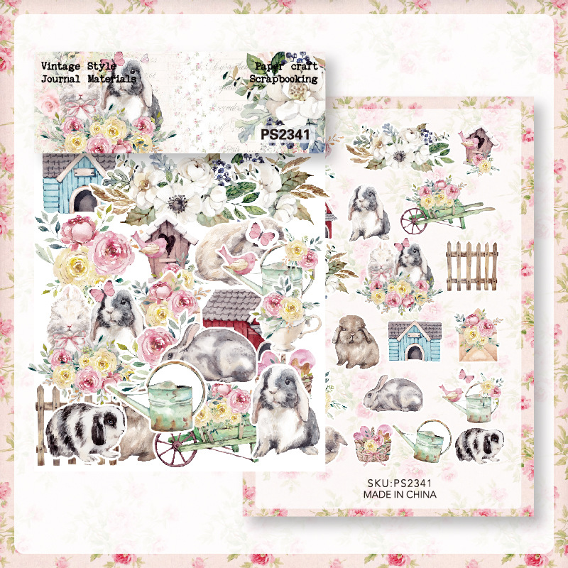 クロスボーダー専用40枚木屋うさぎステッカーバッグ文芸レトロ手帳素材バッグ素材紙ダイカットps2341