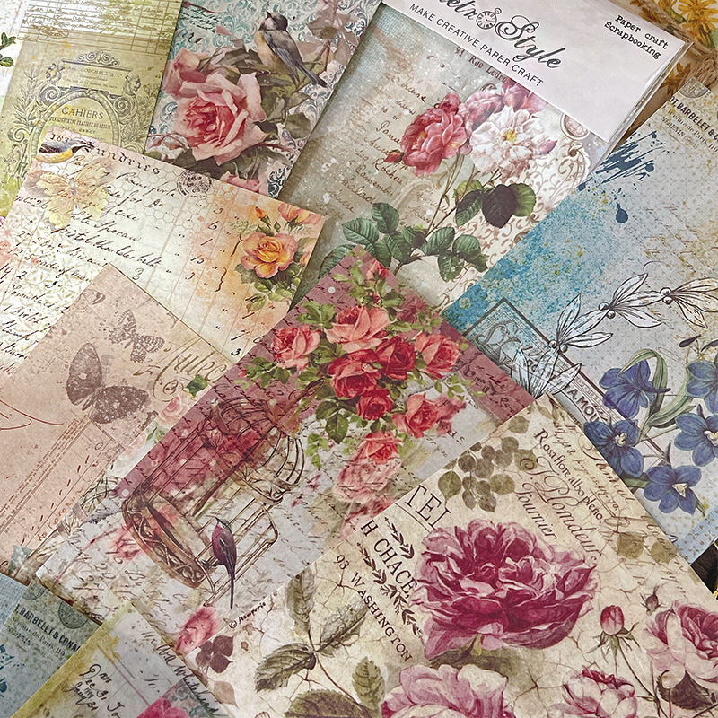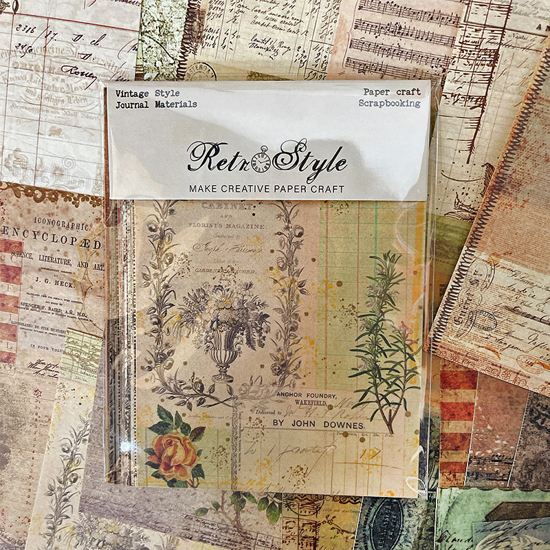 レトロ調素材紙diyアルバムクリップ本手帳素材紙カード素材背景紙rz3103
