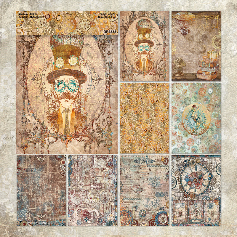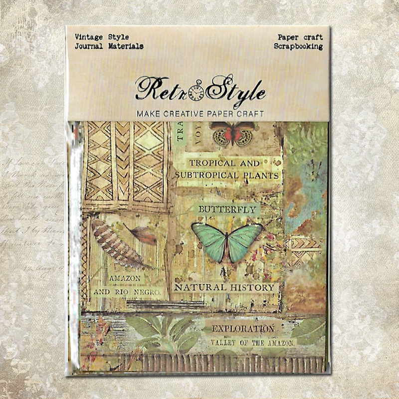 レトロ調素材紙diyアルバムクリップ本手帳素材紙カード素材背景紙r3517
