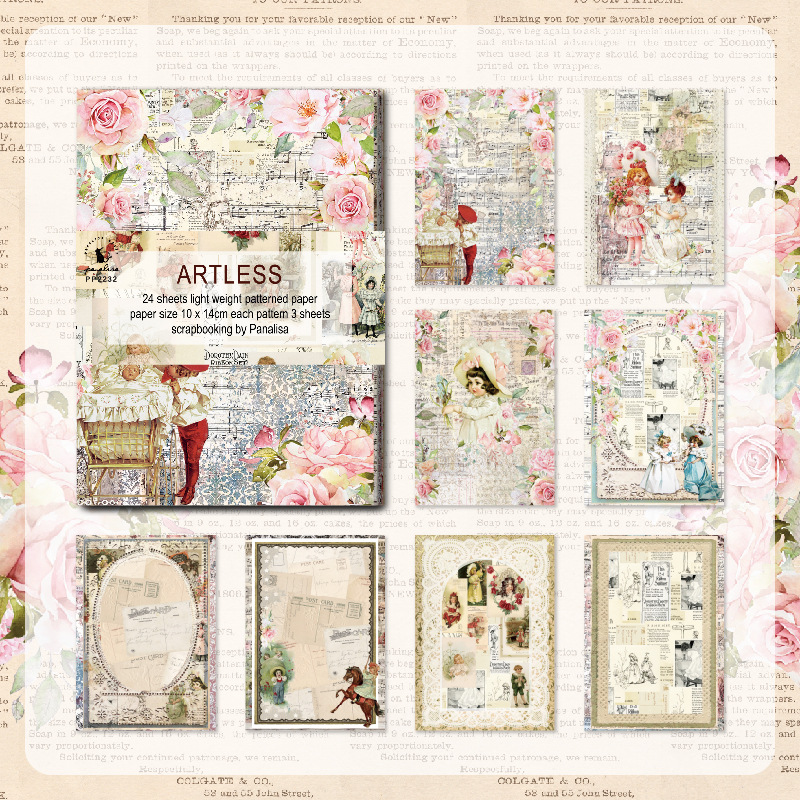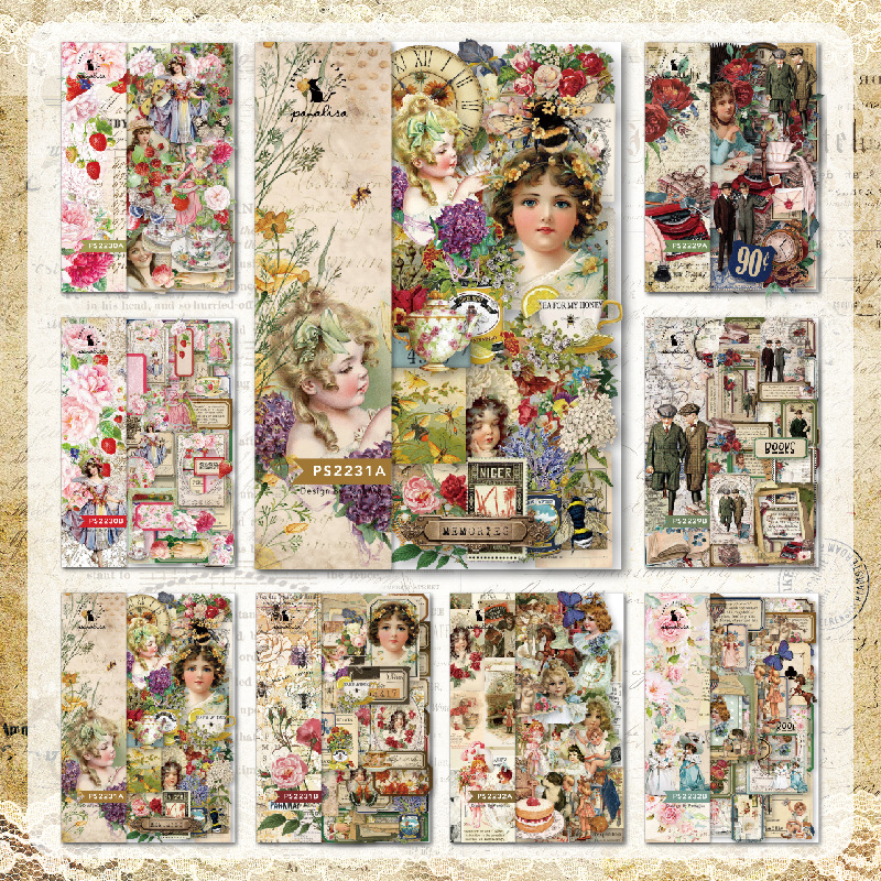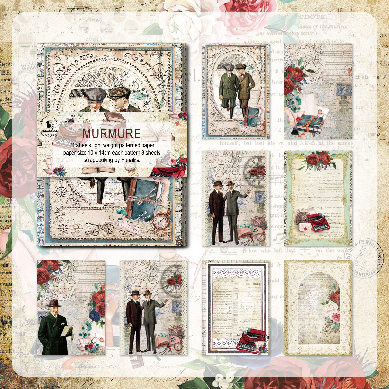 24枚 DIYフォトアルバム クリップアート素材紙 レトロ背景紙 パターン紙 PP22032 アメリカンスタイルデコレーション