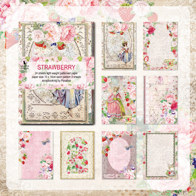 24枚diyアルバムステッカー手帳素材紙レトロいちご背景紙パターン紙pp22030