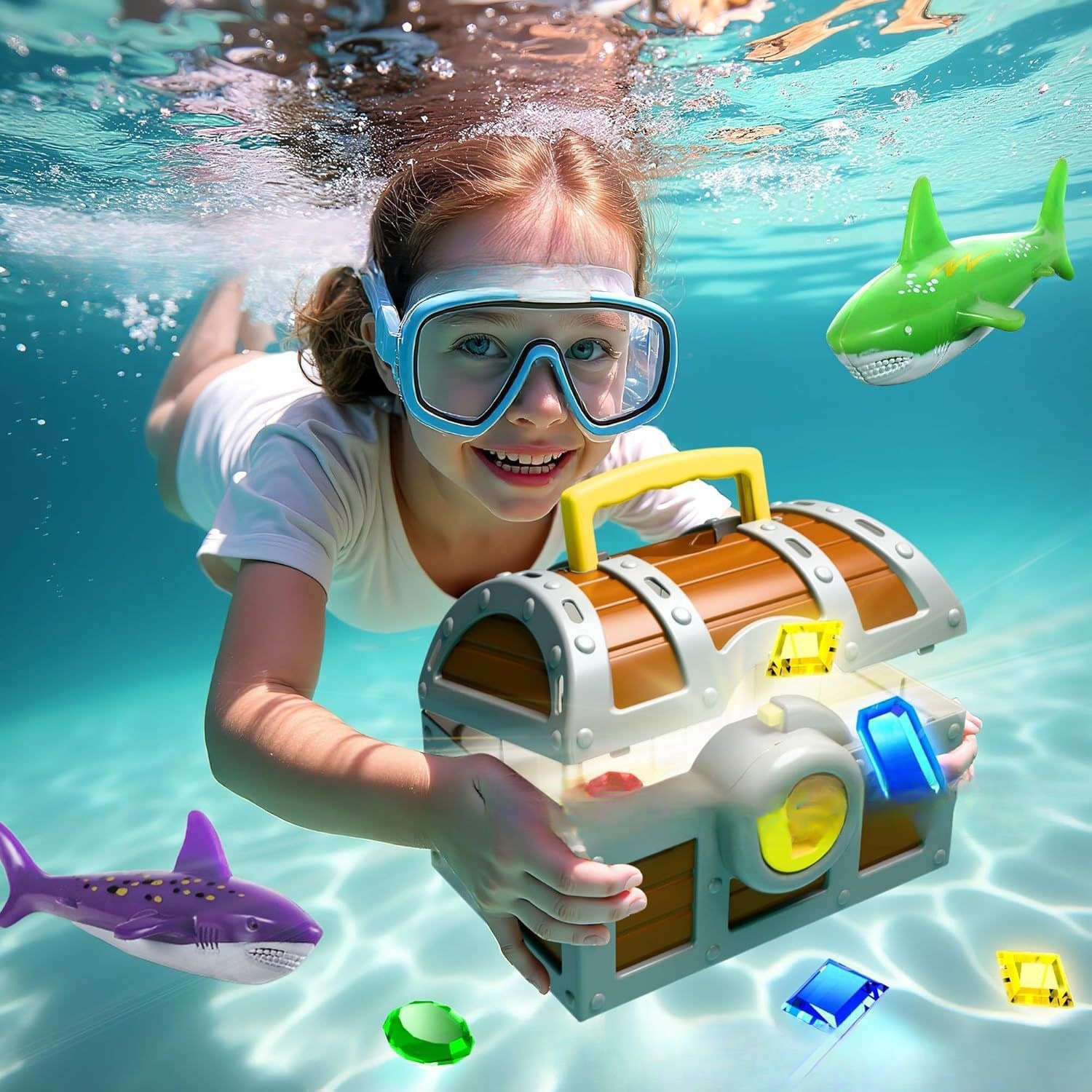 ウェーブプール子供用ダイビングプールおもちゃ、キージェムフィッシュ付き大型宝箱水ダイビングゲーム、幼児屋外