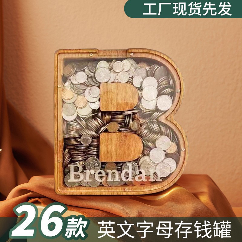 国境を越えた新製品木製貯金箱クリエイティブステッカー 26 英字貯金箱木製貯金箱