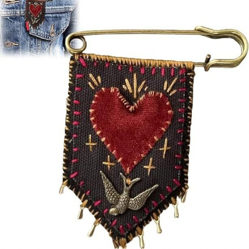 ローズマリーのハート型とクローバーのローズマリーの希望の守護袋ブローチ付きクロスボーダーポケット