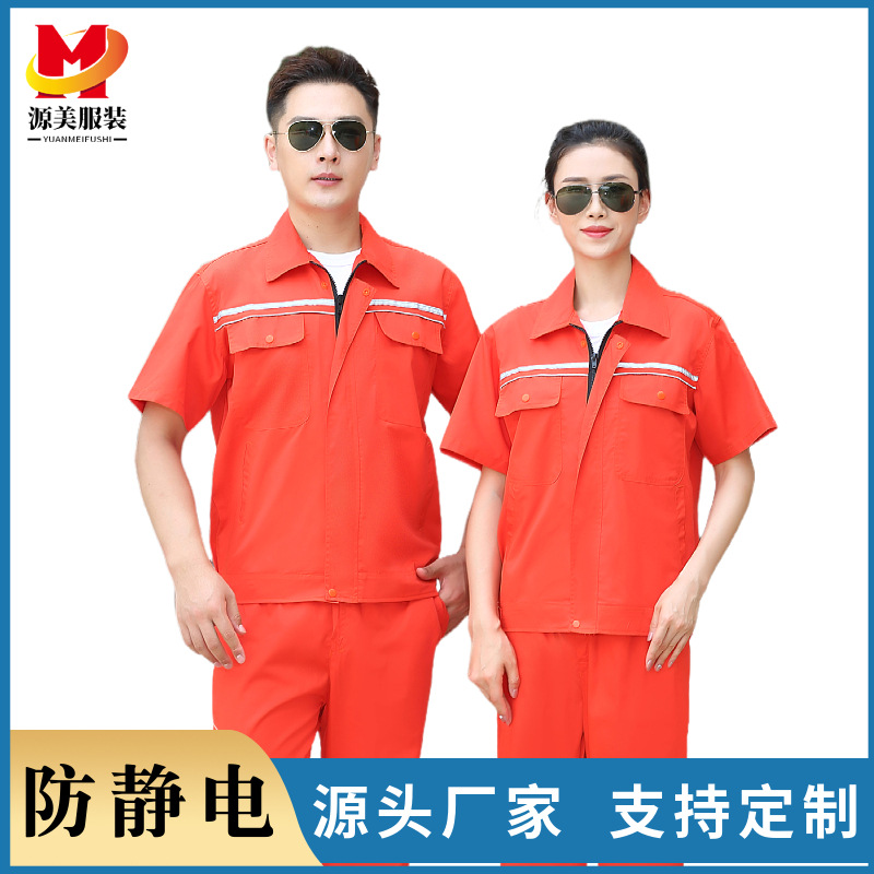 夏の薄いタイプの静電気防止半袖セット男女反射ストリップ作業服電子工場工装カスタム卸売り