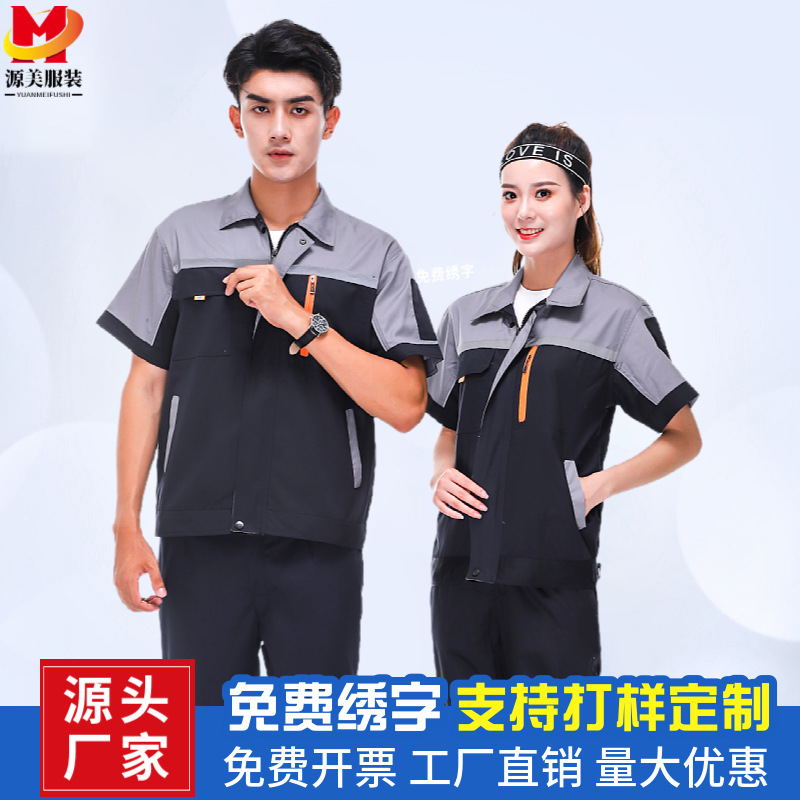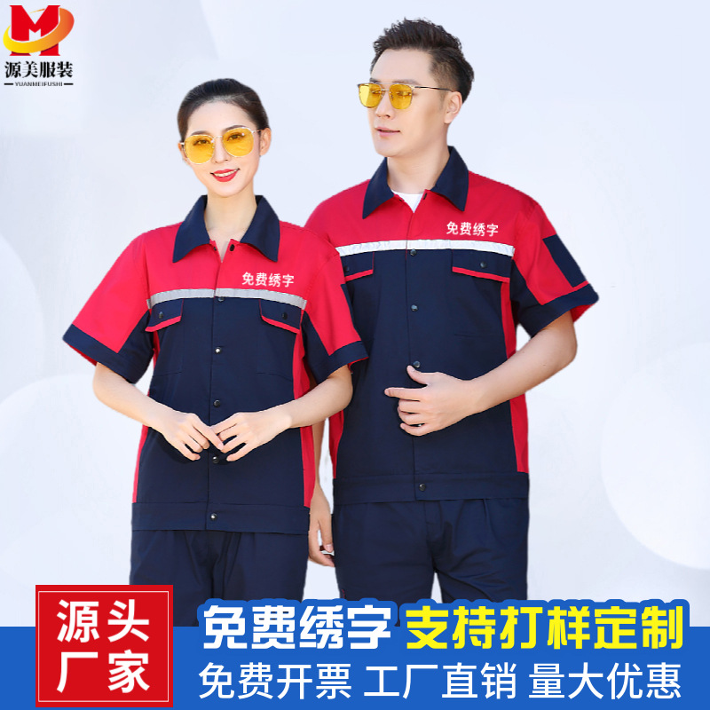 夏の半袖の色合わせの反射作業服工場の現場に維保修理労働保険服の自動車修理服を設置してカスタマイズする