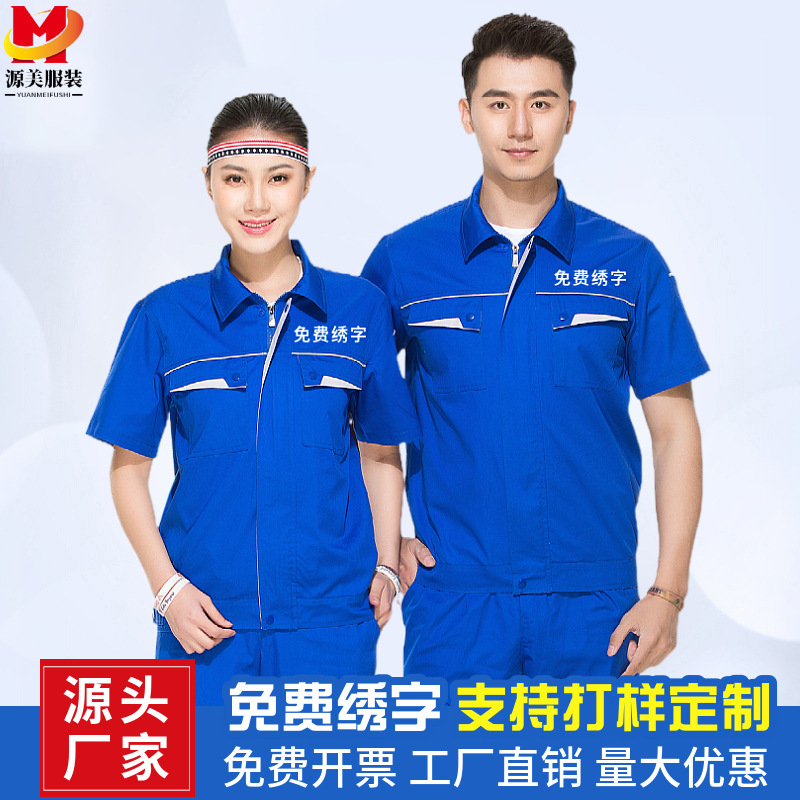 純綿夏薄手吸汗作業服セット男女工場服事務職業服作業服労働保険メーカー卸売り