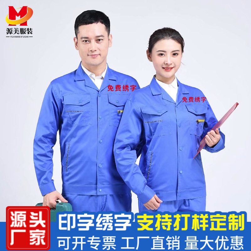 綿作業服セット労働保険服夏の長い半袖作業服上着工場修理耐摩耗性工装印字