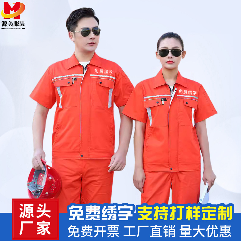 夏の反射作業服セット耐摩耗性半袖通気性の薄い工場工場の自動車修理上着カスタム労働保険服