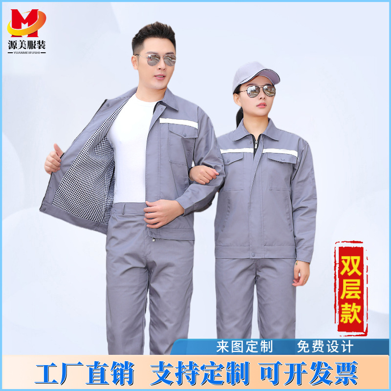 春秋作業服セット男性長袖自動車修理服工場現場労働保険服電気溶接工装上着カスタマイズ