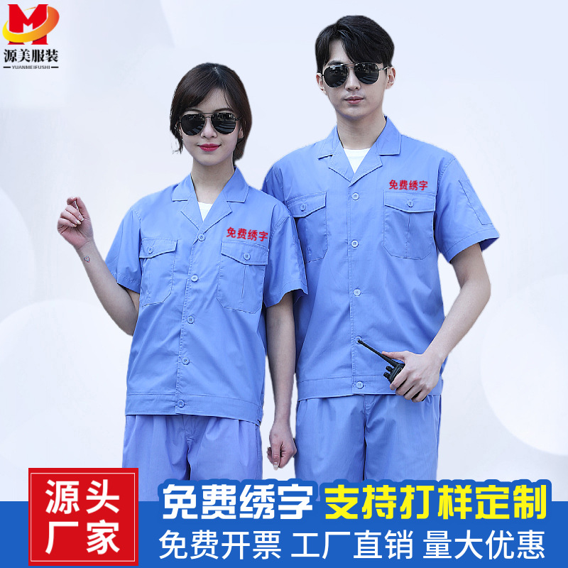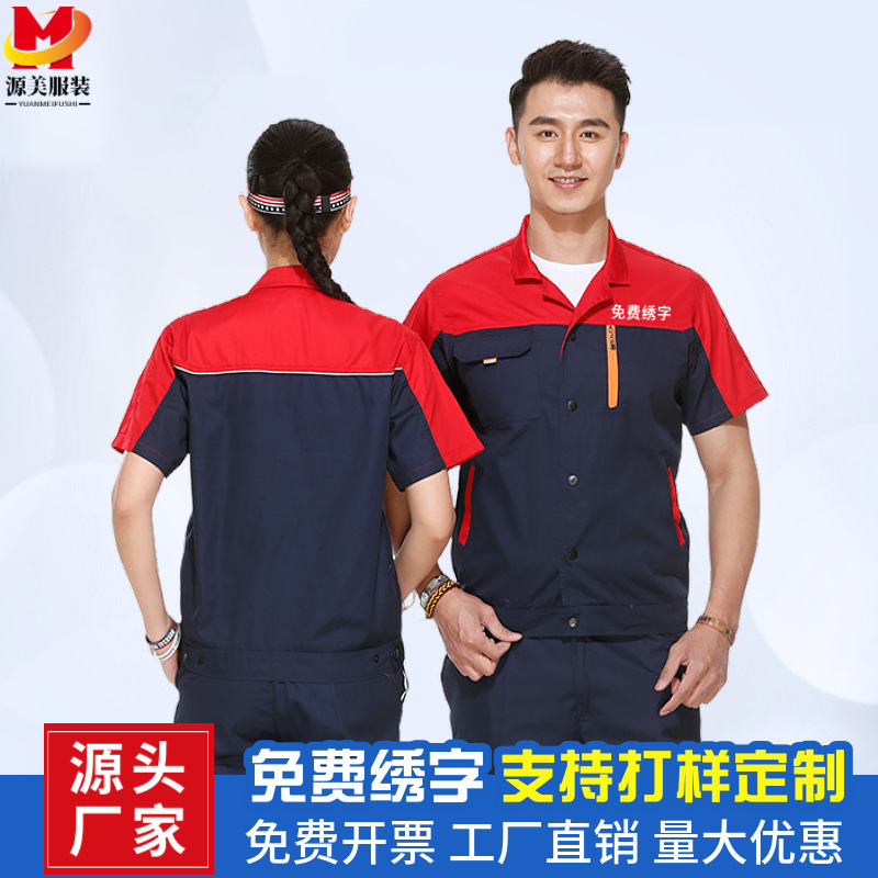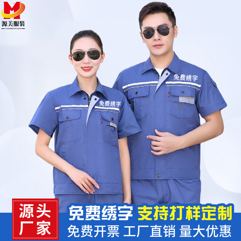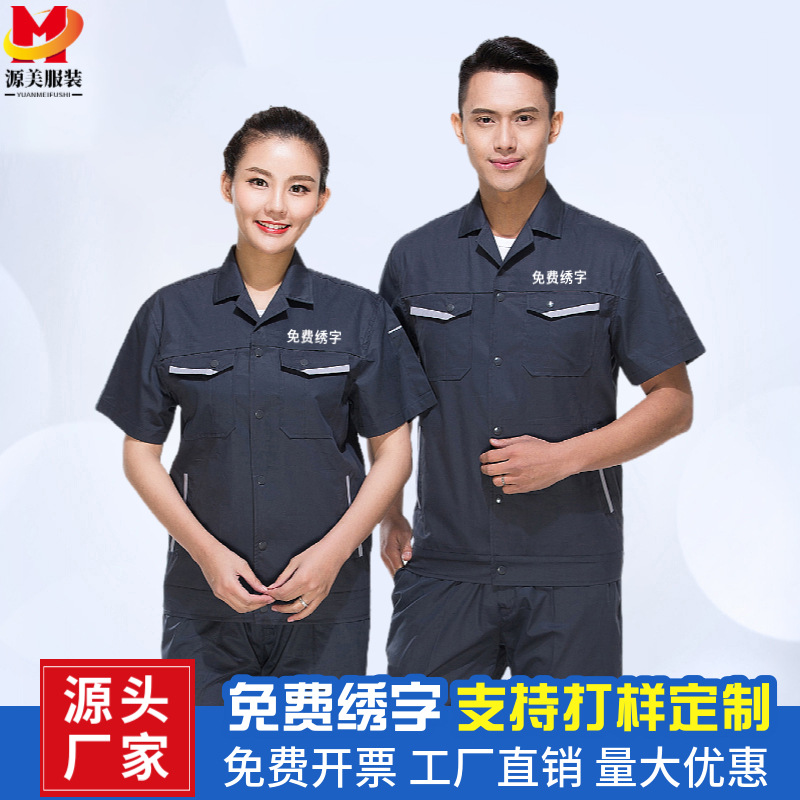 夏の通気半袖作業服セット男性工場工場定労働保険服自動車修理電気溶接工地工装印刷