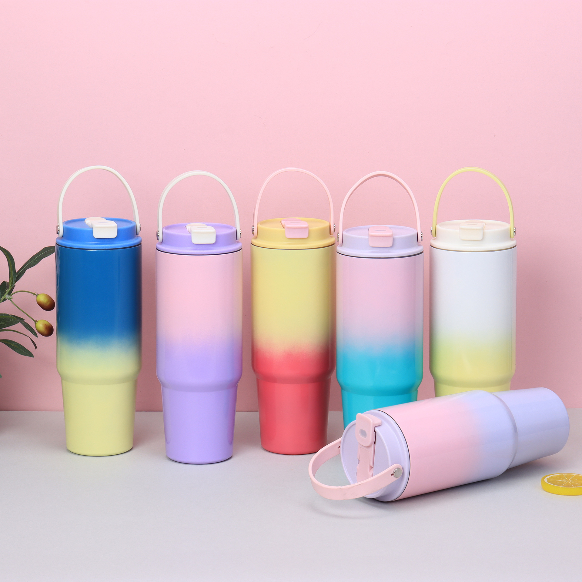 国境を越えた二層真空304ステンレス鋼魔法瓶カップ、高価値グラデーション屋外大容量保冷アイスカップ