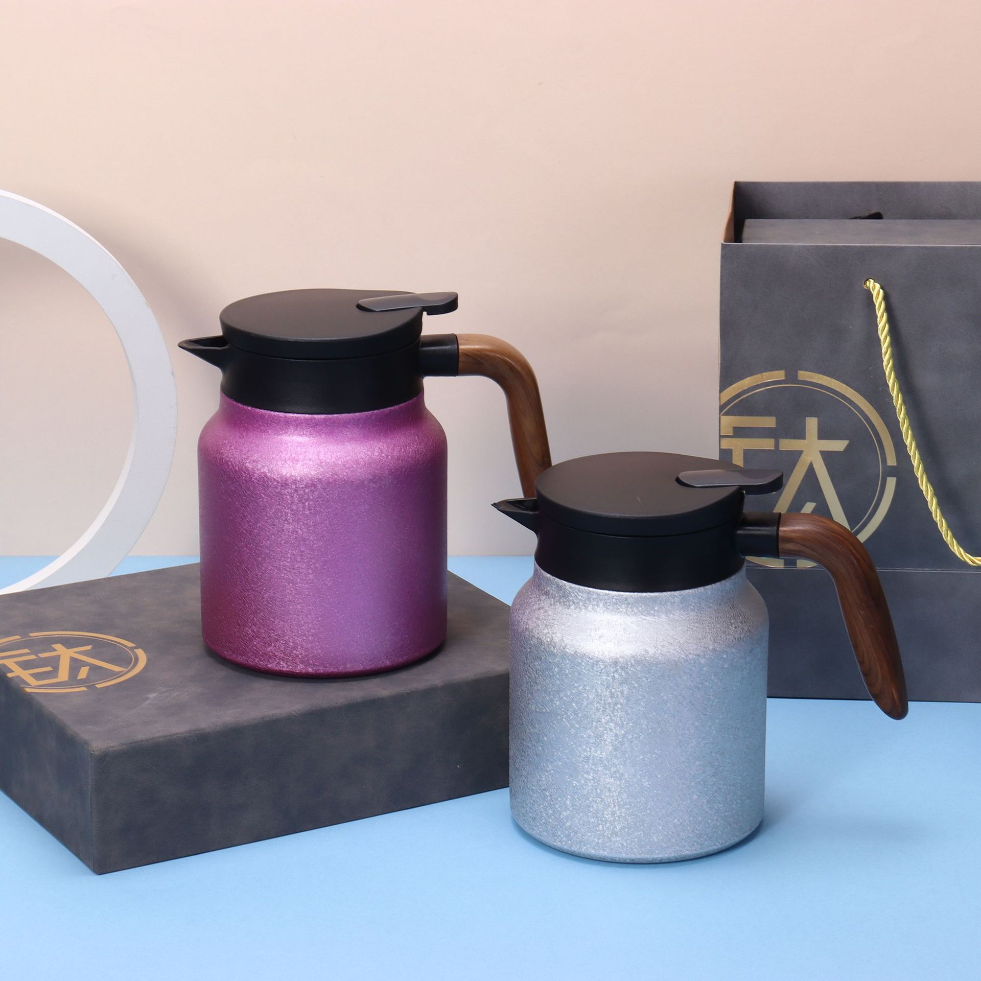 新しいチタンコーティングされたシチューティーポット 316 ステンレス鋼断熱カップ木目ハンドル茶水分離シチューポット大容量