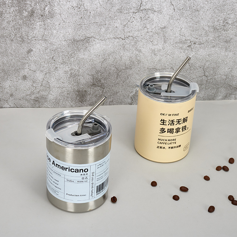 304 ステンレス鋼アイスアメリカンコーヒーカップ二層真空ストローカップ家庭用ポータブルシンプルなギフトカップ