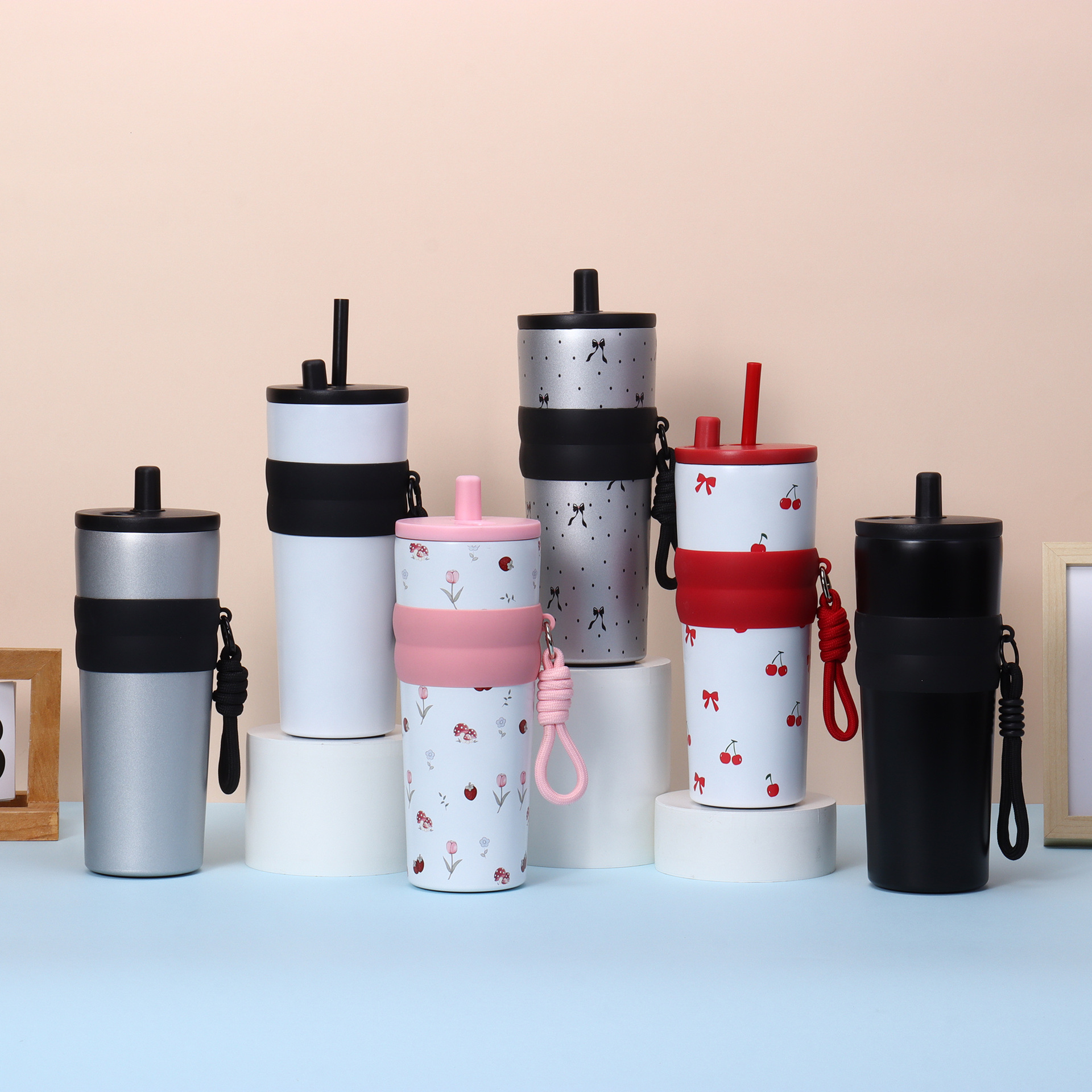 316 ステンレス鋼のポータブルロープストロー断熱カップ高価値プリントアウトドアスポーツポータブルアイスストローカップ