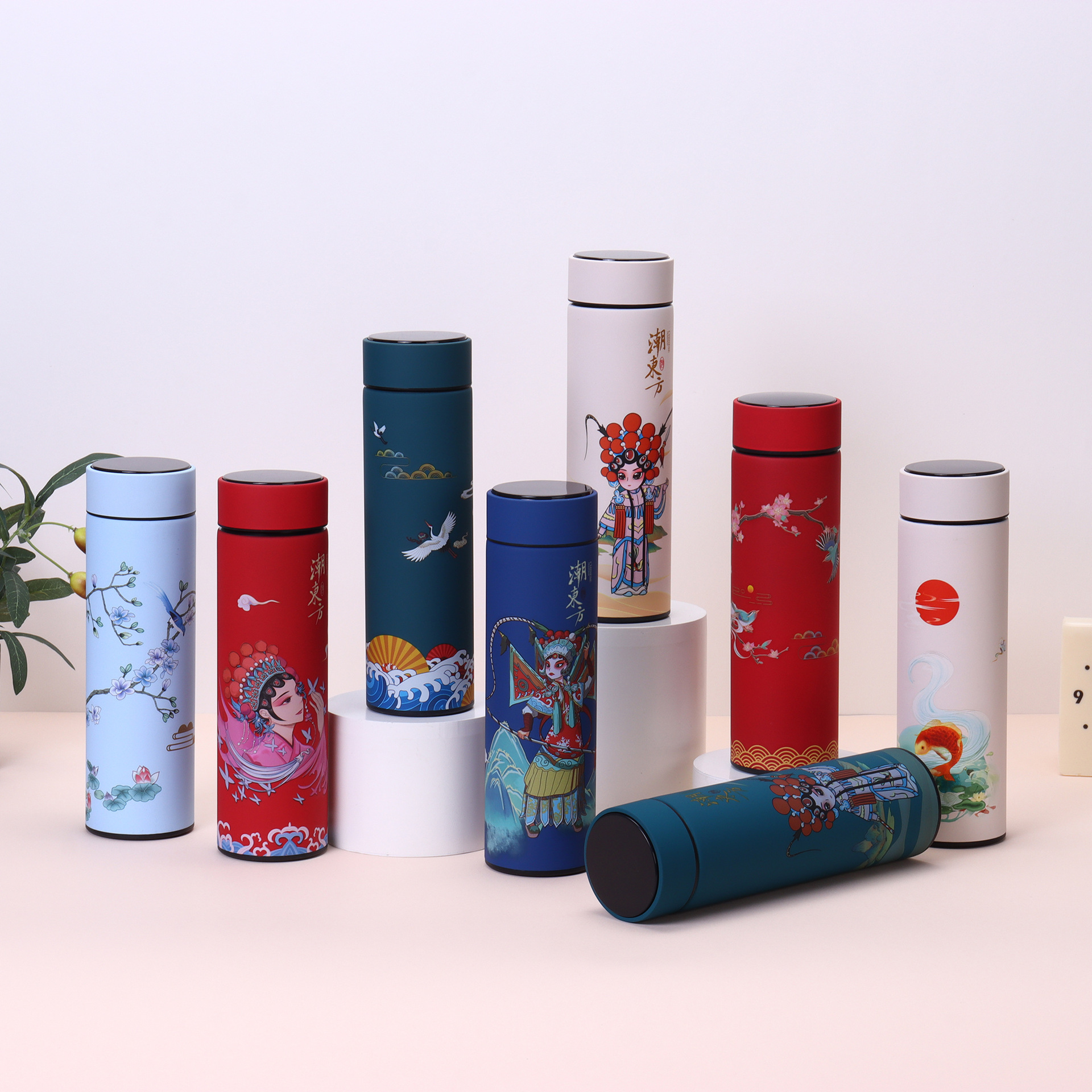中国風のファッショナブルな 304 ステンレス鋼魔法瓶カップオフィスポータブルビジネスギフトタッチ温度表示ストレートカップ