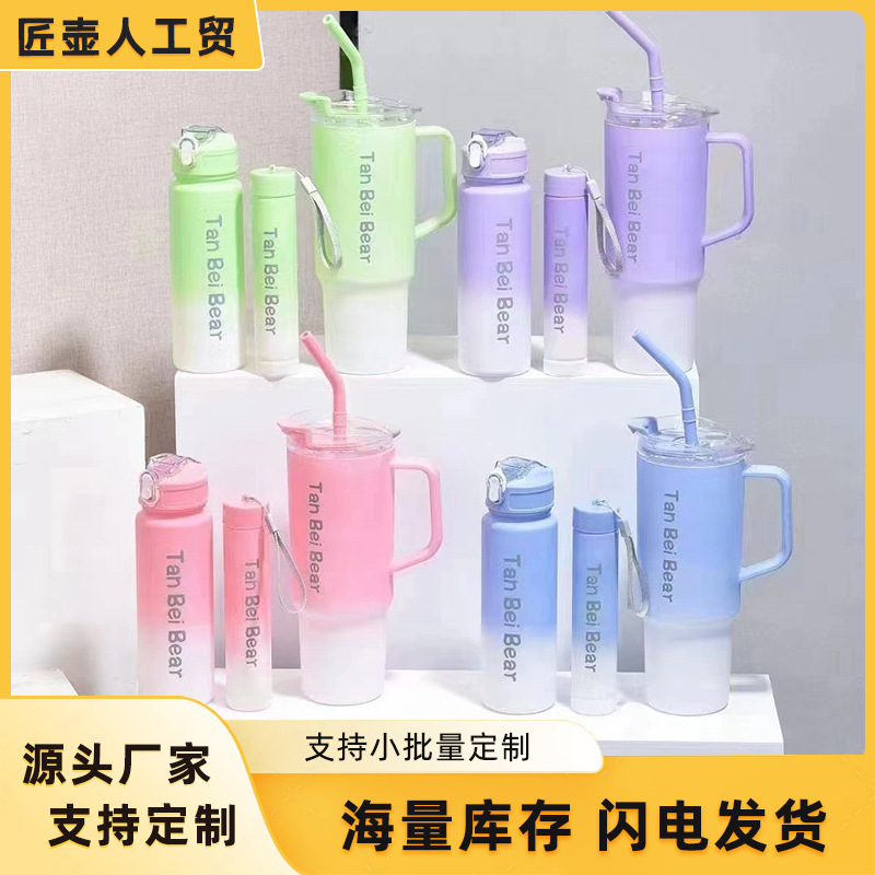 新しいインターネットセレブのグラデーション高価値スリーピース40オンス大容量ウォーターカップアウトドアスポーツポータブルハンドルストローカップ