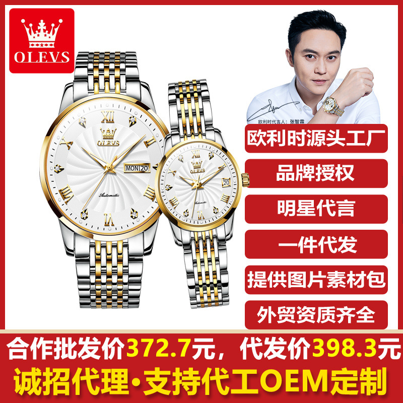 代発欧利時ブランド腕時計女性卸売り全自動機械時計潮ビジネス防水カップル腕時計男