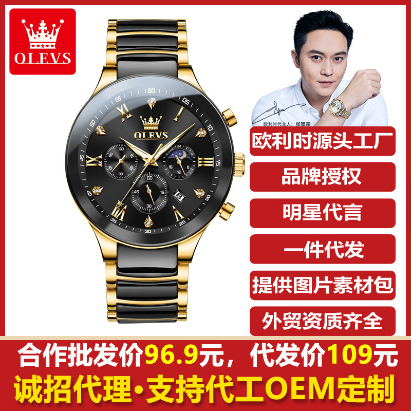 欧利時ブランド腕時計メーカー卸売り石英時計対外貿易大文字板陶磁器夜光男性腕時計男性時計潮