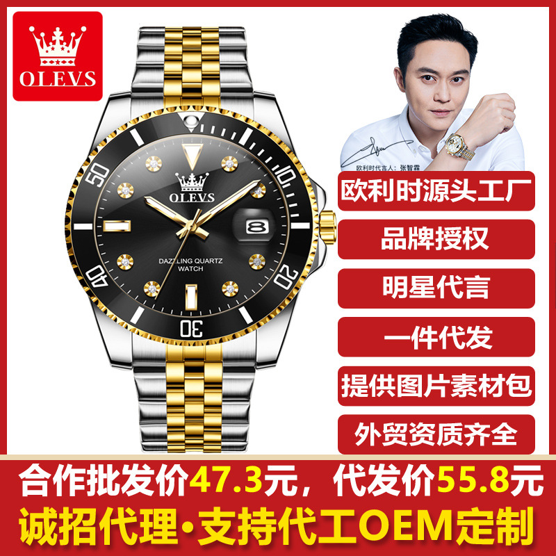欧利時OLEVSブランド腕時計卸売り石英時計シンプル老人腕時計対外貿易華強北男性腕時計