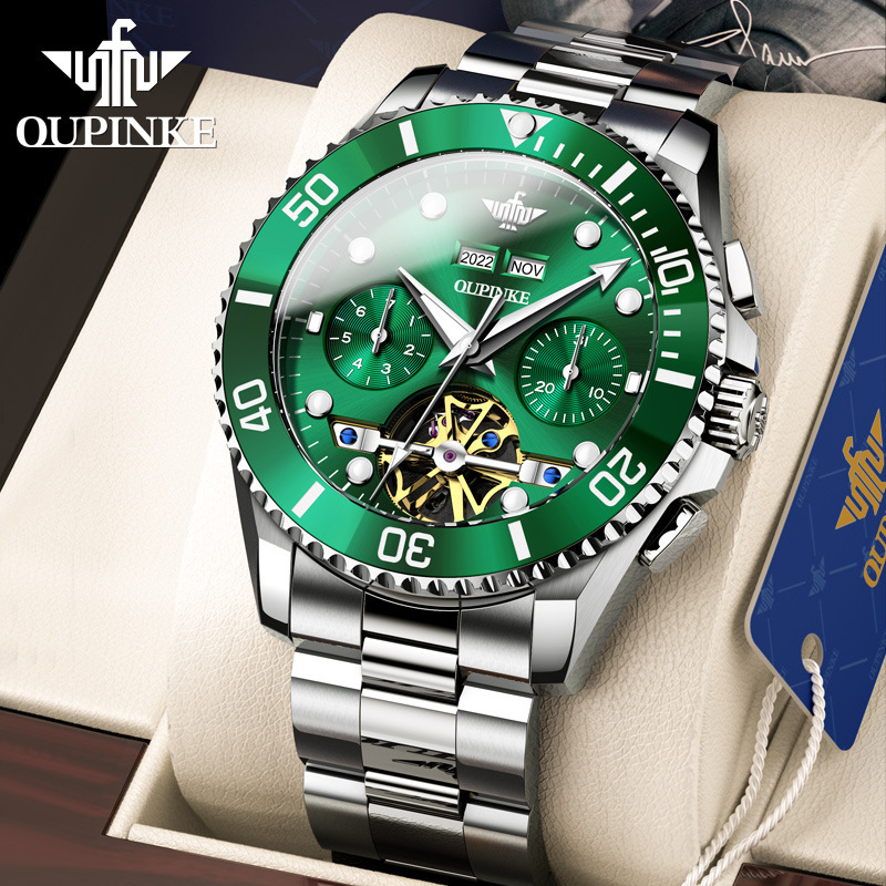 2023新型欧品客ブランド腕時計全自動機械時計緑水鬼多機能男性腕時計男性時計潮