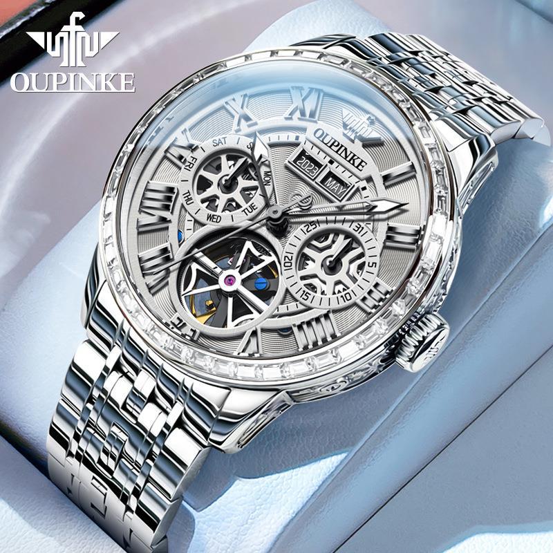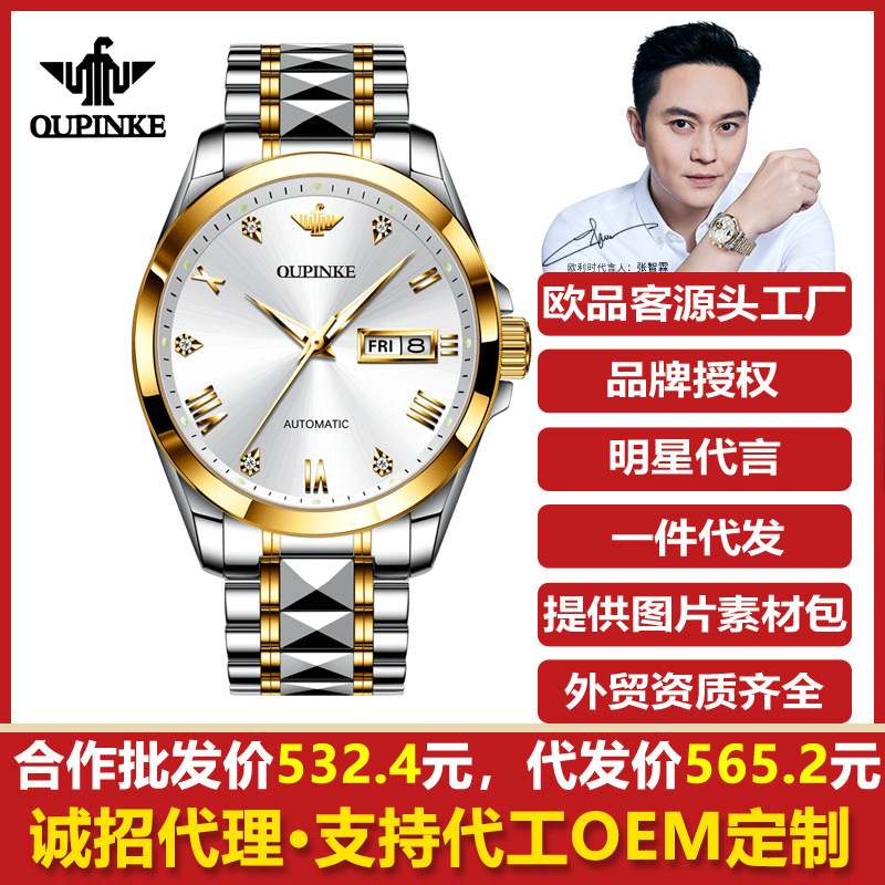 代理欧品客の新型透かし彫り全自動機械時計多機能ビジネス防水男性腕時計男性時計