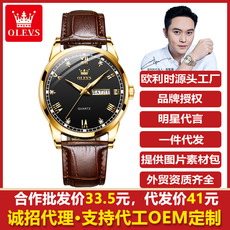 Olevs欧利時ブランド腕時計クロスボーダー対外貿易大文字板多機能運動石英時計男性腕時計男