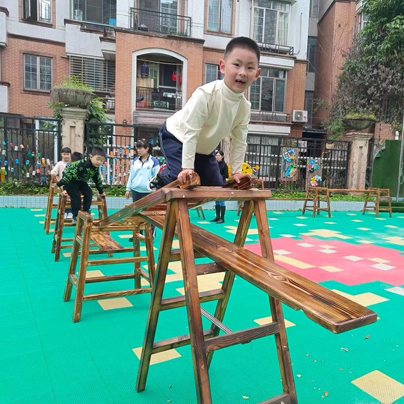 幼稚園の炭素化は木の梯子の感覚を登ります。