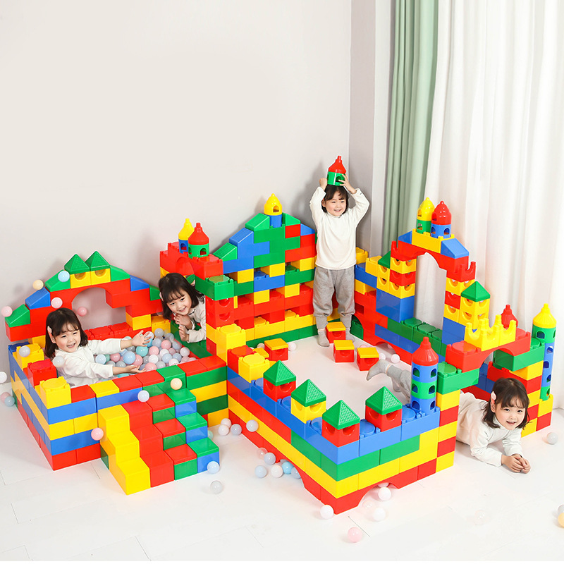 室内の朝の教育センターの大きい粒子は城の積み木の子供のプラスチックの益智をつづり合わせて構築します。